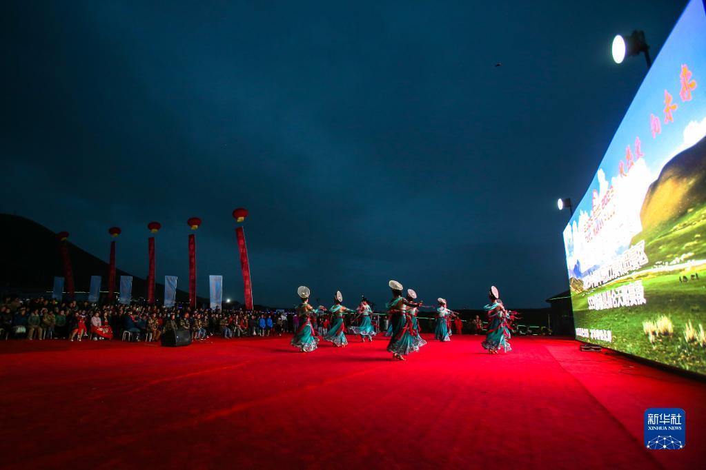 5月30日,環塔拉力賽昆侖天路賽段篝火晚會在新疆和田策勒縣板蘭格景區舉辦,這是游客在水箱精觀看歌舞扮演。